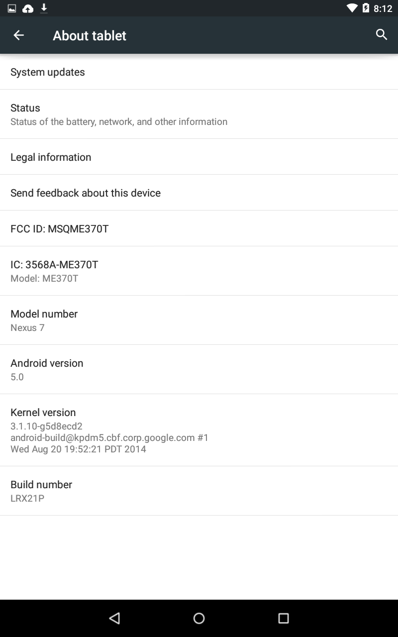 Download Android 5.0 (LRX21P) voor Nexus 7 (2012):