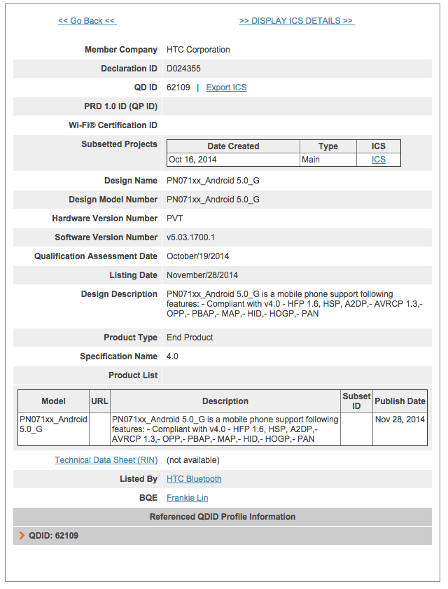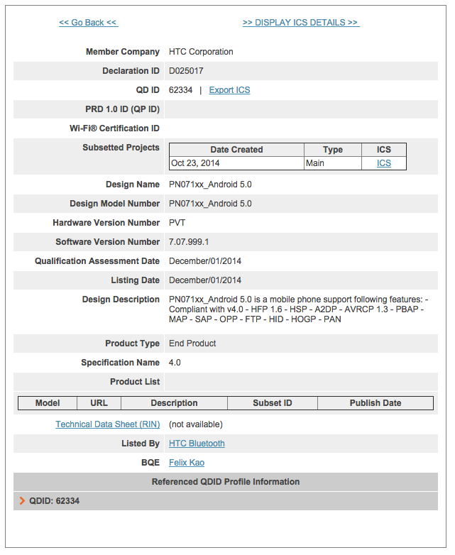 Ben je in het bezit van een HTC One (M7) of HTC One (M7) Google Play Edition dan hebben we goed nieuws voor je, want het lijkt erop dat de Android 5.0 Lollipop software voor beide modellen zo goed als klaar is. In de database van de Bluetooth Special Interest Group is namelijk te zien dat HTC twee nieuwe software versies heeft aangemeld, een versie voor de standaard HTC One (M7) en een versie voor de Google Play Edition variant.