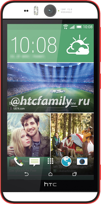 Op een aantal afbeeldingen van HTCFamily zien we ook de achterkant van de telefoon. Het lijkt er op dat het gaat om dezelfde camera als op de voorkant. Verder zien we de voorkant in het rood met wit en blauw met een ontwerp dat veel op dat van de HTC Desire 820 lijkt.