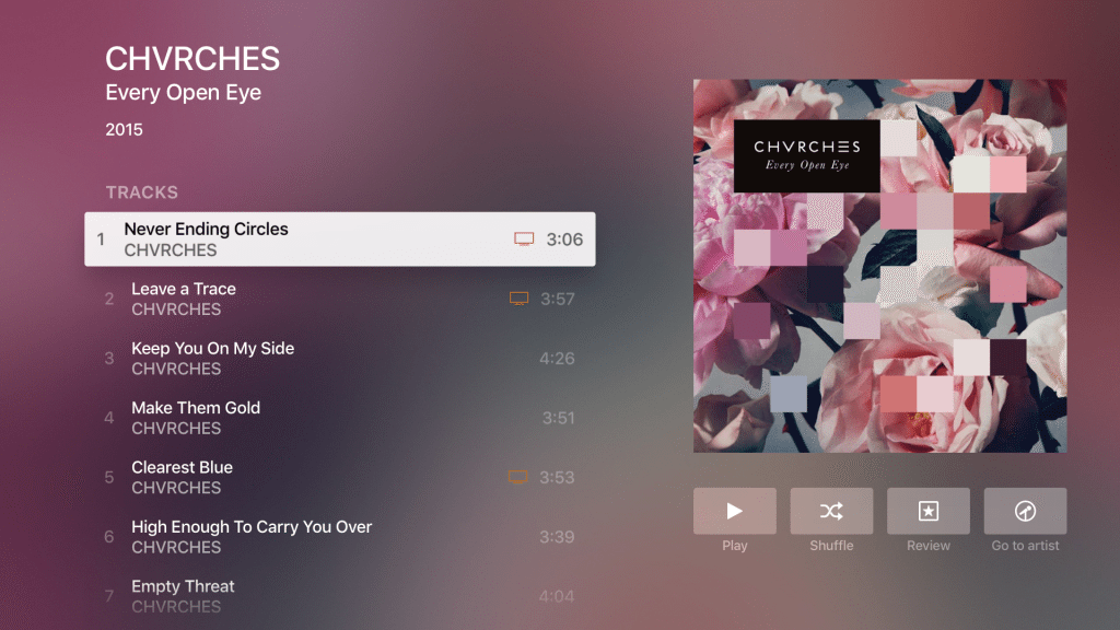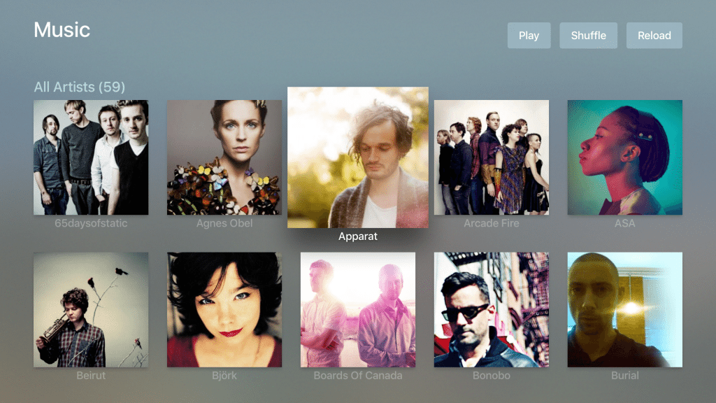 Na de installatie van Plex op de Apple TV krijg je toegang tot je persoonlijke mediabibliotheek, terwijl de dienst informatie ophaalt van het web over de beschikbare content, waaronder beoordelingen van Rotten Tomatoes, trailers, IMDB en ga zo maar door. De dienst laat gebruikers ook zoeken op basis van de cast, regisseur, genre en andere filters. Bij het doorzoeken van je muziek wordt er ook automatisch informatie opgevraagd over de artiest en geeft Plex covers weer van het album.