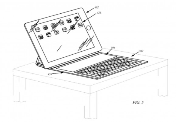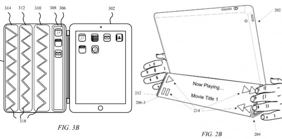 Het zou in de praktijk zelfs mogelijk zijn om de nieuwe Smart Cover te gebruiken als een toetsenbord, zoals ook te zien is in de afbeelding hierboven. Eerder dit jaar zagen we al dat Microsoft iets vergelijkbaars heeft ontwikkeld voor de Surface tablets, maar het gebruik van een flexibel scherm is iets wat we nog niet eerder hebben gezien. De binnenkant van de Smart Cover kan volgens het patent ook worden gebruikt voor het maken van digitale schetsen of soortgelijke toepassingen.
