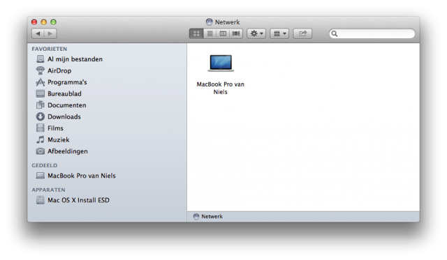 3. Open OS X Finder en gebruik te toets combinatie ‘Command+Shift+K’ en selecteer de Mac waarmee je bestanden wilt delen.
