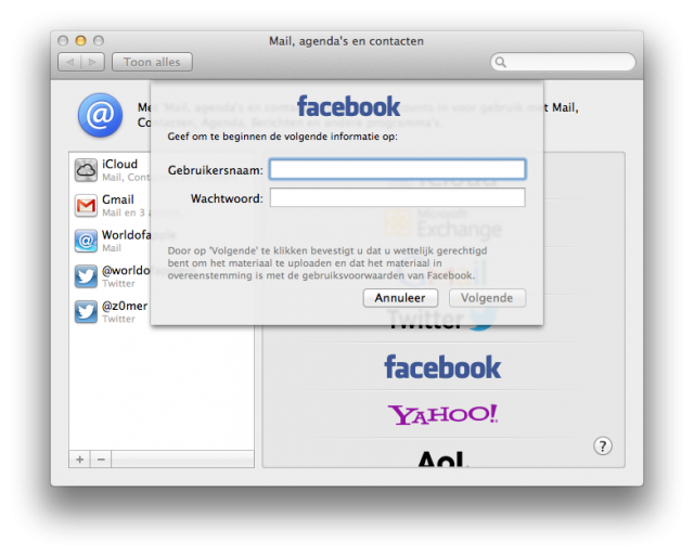 Facebook integratie gebruiken in OS X 10.8.2+ Mountain Lion