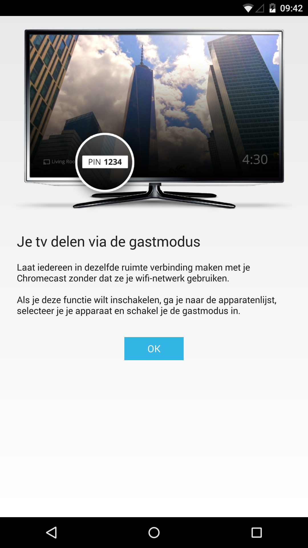 Naast de toevoeging van gastmodus heeft Google ook de Chromecast app voorzien van een vernieuwde interface waar het Material Design nadrukkelijk aanwezig is. Verder kunnen Android 4.4.2+ producten nu ook het scherm casten naar de televisie. Dit betekent dat alles wat je doet op je smartphone ook zichtbaar is op de televisie.
