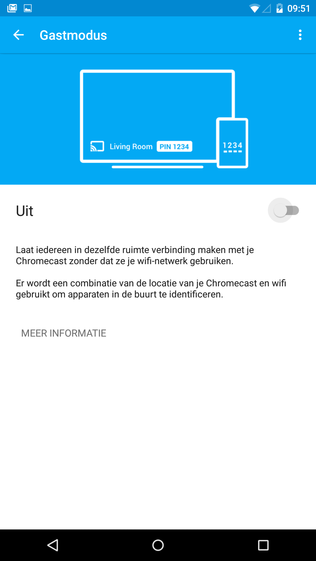 Na het installeren van de update wordt je vermoedelijk onmiddellijk geïntroduceerd met de gastmodus. Anders open je de app, maak je verbinding met je Chromecast en schakel je gastmodus in. Het is welkome toevoeging, vooral voor gebruikers die weinig trek hebben om elke keer hun draadloze netwerk te moeten delen met andere gasten.