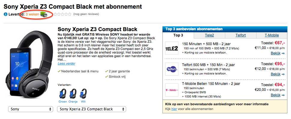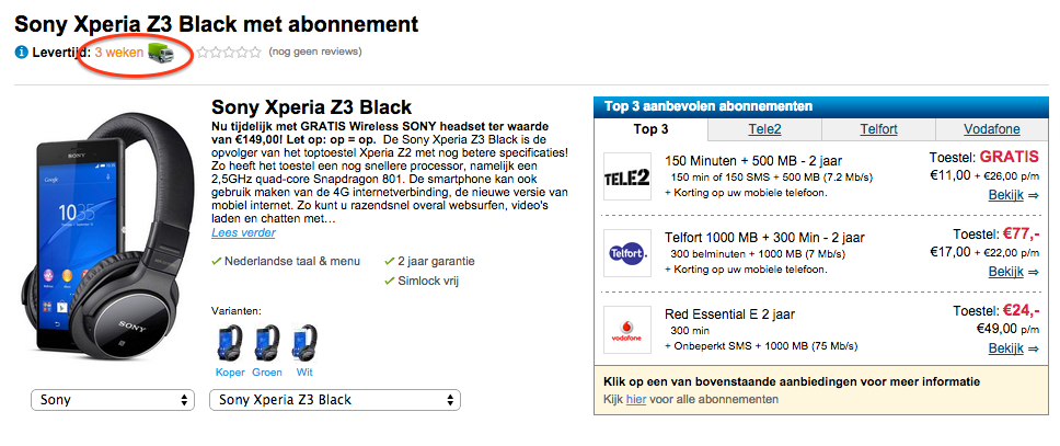 Haal je de telefoon liever in combinatie met een abonnement dan zijn dit de beste Sony Xperia Z3 abonnementen: