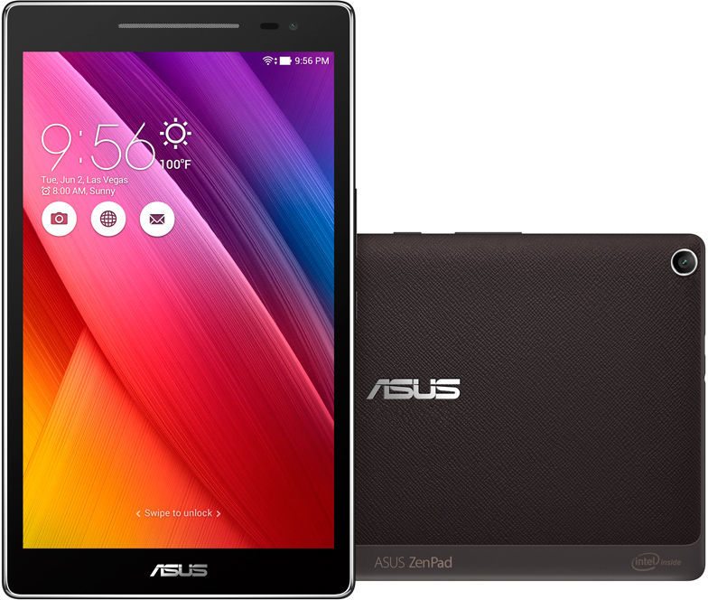 De overige specificaties bestaan uit een 8-inch scherm met een resolutie van 1280 x 800 pixels (189 pixels per inch) en een beeldverhouding van 16:10. Het is een IPS scherm en dat heeft als voordeel dat kleuren er natuurlijk uitzien en dat de kijkhoeken goed in orde zijn. De Atom x3-C3200 is het kloppende hart van de Asus ZenPad 8.0 met vier Bay Trail cores in combinatie met 2GB LPDDR3 werkgeheugen. De camera aan de achterzijde is voorzien van een 5-megapixel sensor, terwijl selfies kunnen worden geschoten met de 2-megapixelcamera aan de voorkant.
