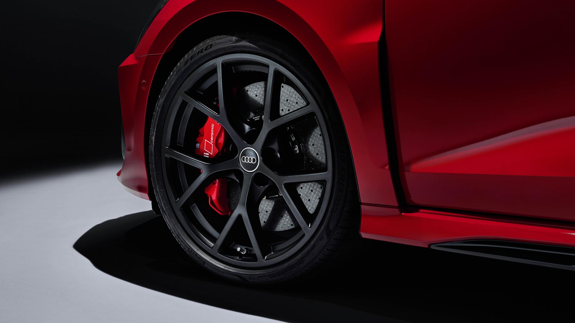 Voor de RS 3-modellen heeft Audi een nieuw remsysteem ontwikkeld. Elke remklauw heeft zes remzuigers. De remschijven vóór (diameter: 375 mm) en achter (310 mm) zijn voor een optimale vertraging en maximale stabiliteit inwendig geventileerd en radiaal doorboord. Speciale air control-elementen verbeteren de remkoeling met 20%. Keramische remschijven vóór (380 mm diameter) zijn optioneel. Dit remsysteem weegt circa 10 kg minder dan de versie met stalen remschijven.