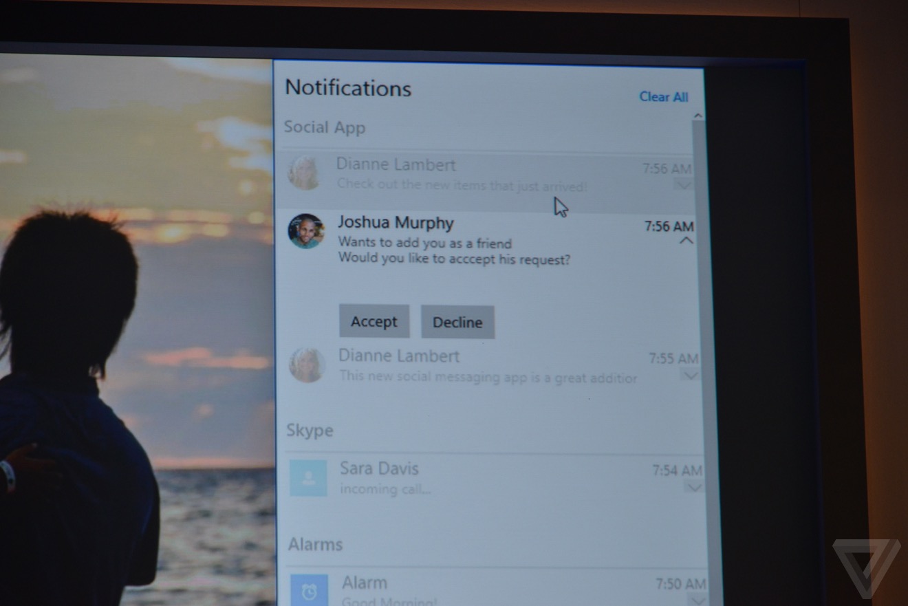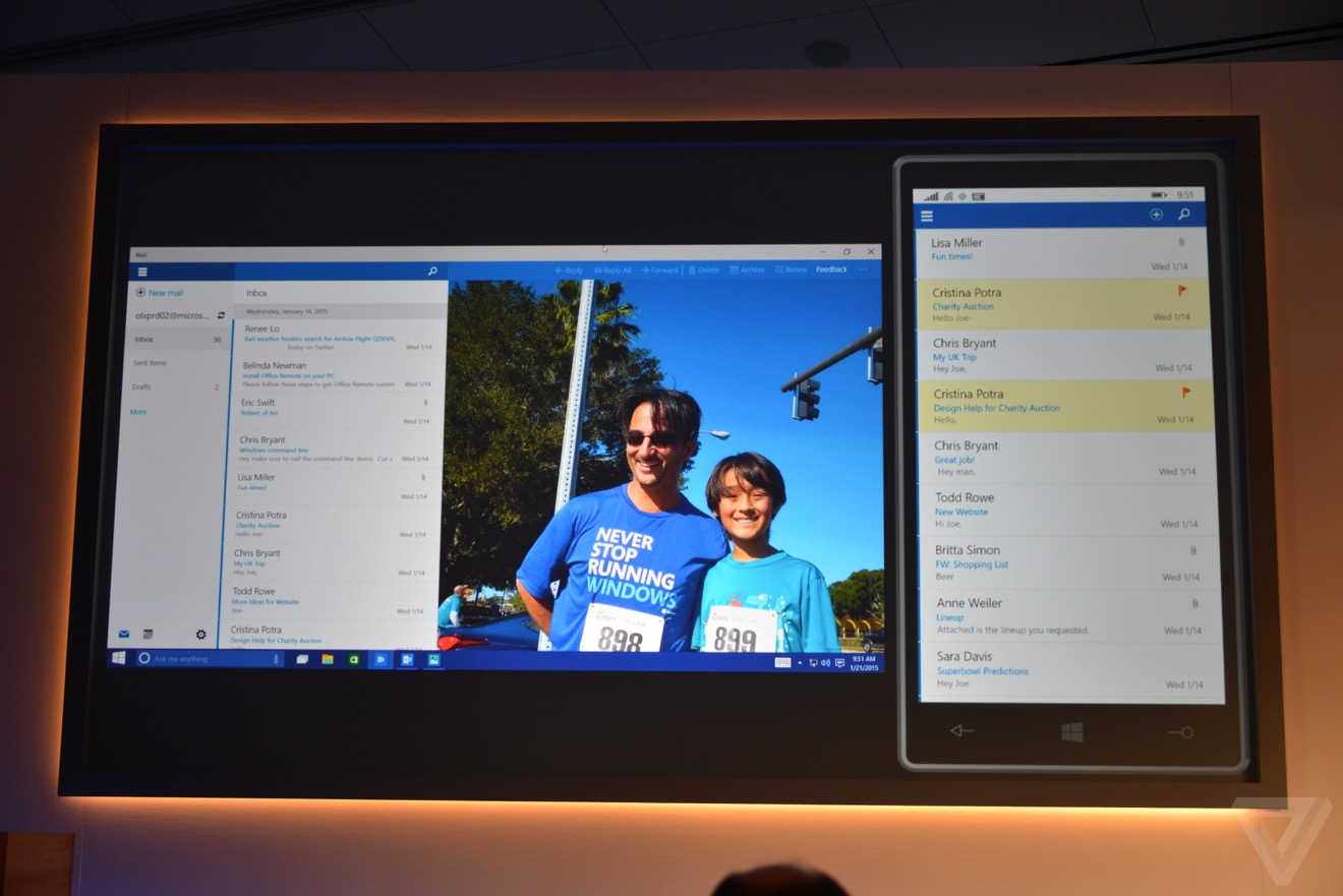 Voor ontwikkelaars biedt het ook een voordeel, want zij hoeven straks slechts 1 app te ontwikkelen die automatisch draait op de computer, smartphone en Xbox. Tijdens de presentatie werd er ook een universele versie van Office getoond op een smartphone, maar dezelfde app werkt ook op een normale computer.