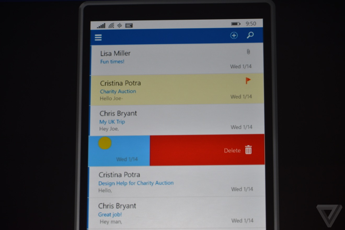 De People app werkt ook op alle Windows 10 apparaten en brengt alle contacten samen. Vanuit de app kun je snel een regulier gesprek starten, bellen via Skype of een bericht versturen naar een contactpersoon. De Outlook-app krijgt ook een update, waarna je straks snel een berichten kan verwijderen (naar links vegen) of een vlag toevoegen (naar rechts vegen). Het schrijven van een bericht verloopt via Word.