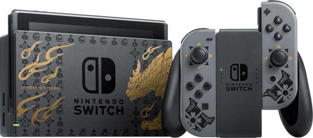De Nintendo Switch Monster Hunter Rise Edition heeft een dock met een afbeelding van Magnamalo, het vlaggenschipmonster van de game, terwijl de console zelf en de Joy-Con-controllers ook zijn versierd met afbeeldingen in Monster Hunter Rise-thema. Het systeem wordt geleverd inclusief een downloadcode voor Monster Hunter Rise plus de Deluxe Kit DLC en bonuscontent. De Nintendo Switch-Pro-controller Monster Hunter Rise Edition wordt apart verkocht en is ook voorzien van een fraai Magnamalo-design.