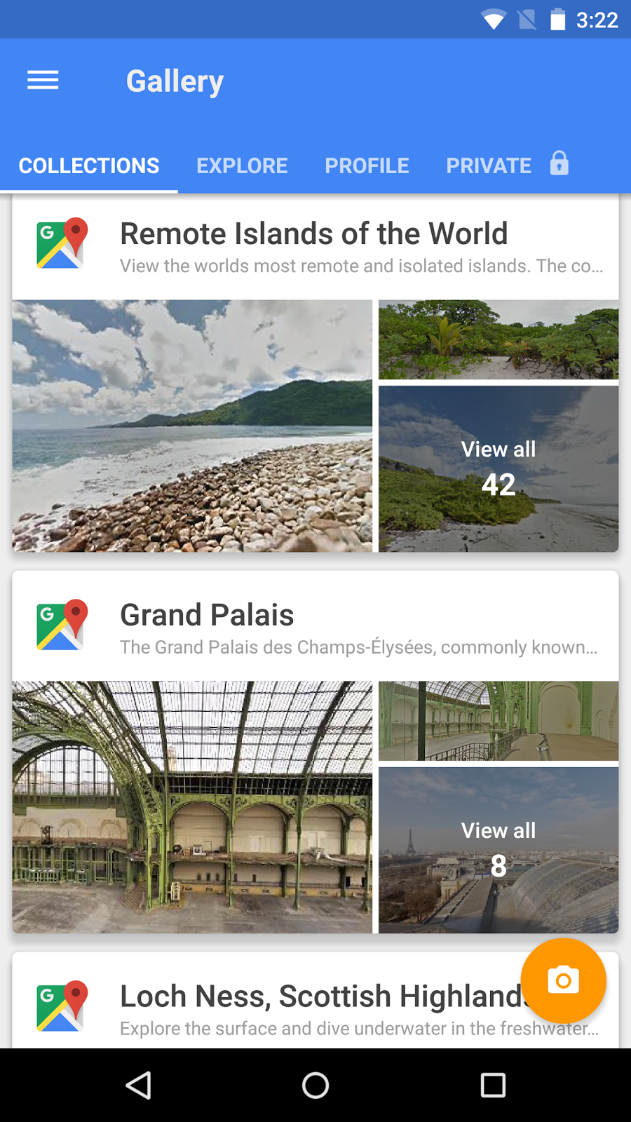 [sc:inpost-tekst ]Vanuit de Street View app is het mogelijk om de wereld te ontdekken. Op de kaart kun je interessante locaties openen, waarna je allerlei foto’s ziet van de specifieke locatie, aanbevelingen voor goede restaurants, hotels, points of interest en ga zo maar door. Mocht je dus op zoek zijn naar het Loch Ness monster in Schotland of meer willen weten over de Eiffeltoren, het is nu allemaal mogelijk vanuit de Street View app.